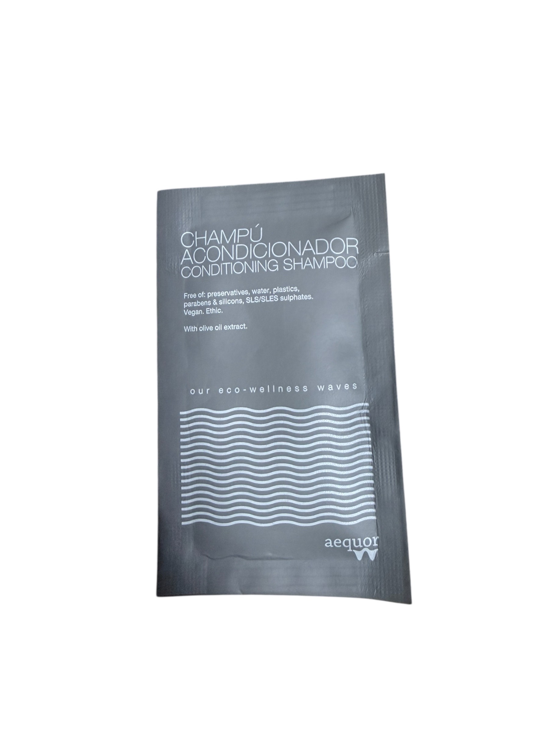 Sobre de champú&acondicionador AEQUOR de 10 ml. oliva.